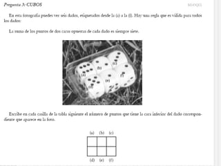 El documento describe el marco conceptual y metodológico del Programa Internacional para la Evaluación de Estudiantes (PISA) de la OCDE en relación con las competencias matemáticas. PISA evalúa la "alfabetización matemática" de los estudiantes, es decir, su capacidad para utilizar conceptos y procedimientos matemáticos para resolver problemas de la vida cotidiana. El enfoque de PISA se centra en los procesos de resolución de problemas y modelización más que en los contenidos curriculares.