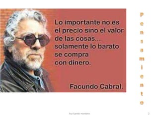 Este documento discute la fijación de precios de productos. Señala que los precios a menudo no son lo suficientemente variados para diferentes segmentos de mercado, no se modifican lo suficiente para aprovechar los cambios en el mercado, y se centran demasiado en los costos en lugar de la estrategia de posicionamiento. También describe los pasos clave en el proceso de fijación de precios, como establecer objetivos de precios, analizar la demanda, los costos y la competencia, y seleccionar un método y precio final. A