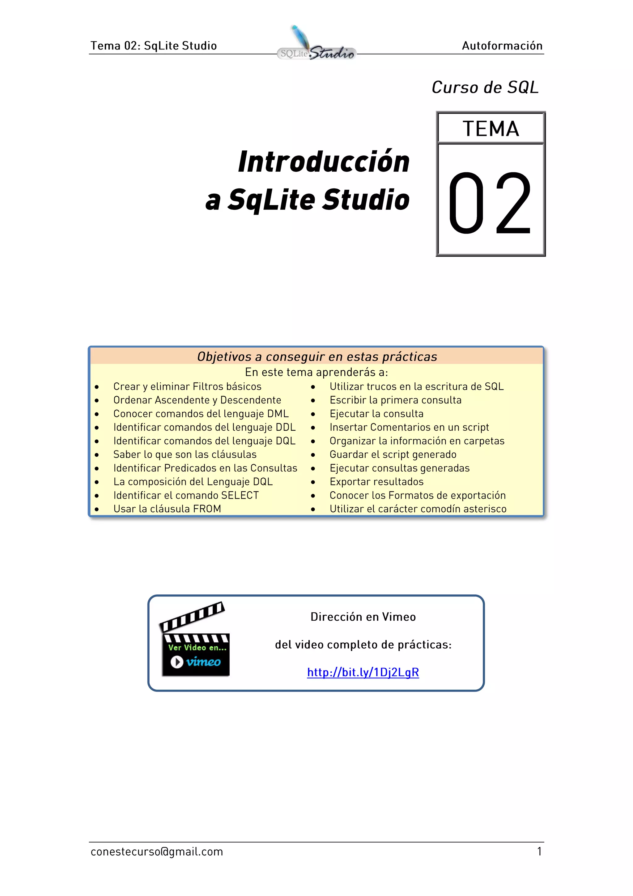 El documento ofrece una guía sobre los comandos básicos de SQL, incluyendo la manipulación de datos (DML), definición de datos (DDL) y consultas (DQL). Se mencionan órdenes como select, insert, update y delete, así como ejemplos de uso y actividades de repaso para consolidar el aprendizaje. También se detalla cómo manejar consultas y scripts en diferentes formatos de archivo.