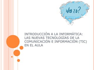 Las nuevas tecnologías de la información y comunicación (TIC) ofrecen valiosas herramientas educativas como Internet y la Web 2.0, que permiten acceder a gran cantidad de información, comunicarse y colaborar de forma síncrona y asíncrona. El documento introduce conceptos básicos sobre las TIC, su aplicación en el aula a través de recursos digitales, y cómo fomentan el aprendizaje activo y colaborativo.