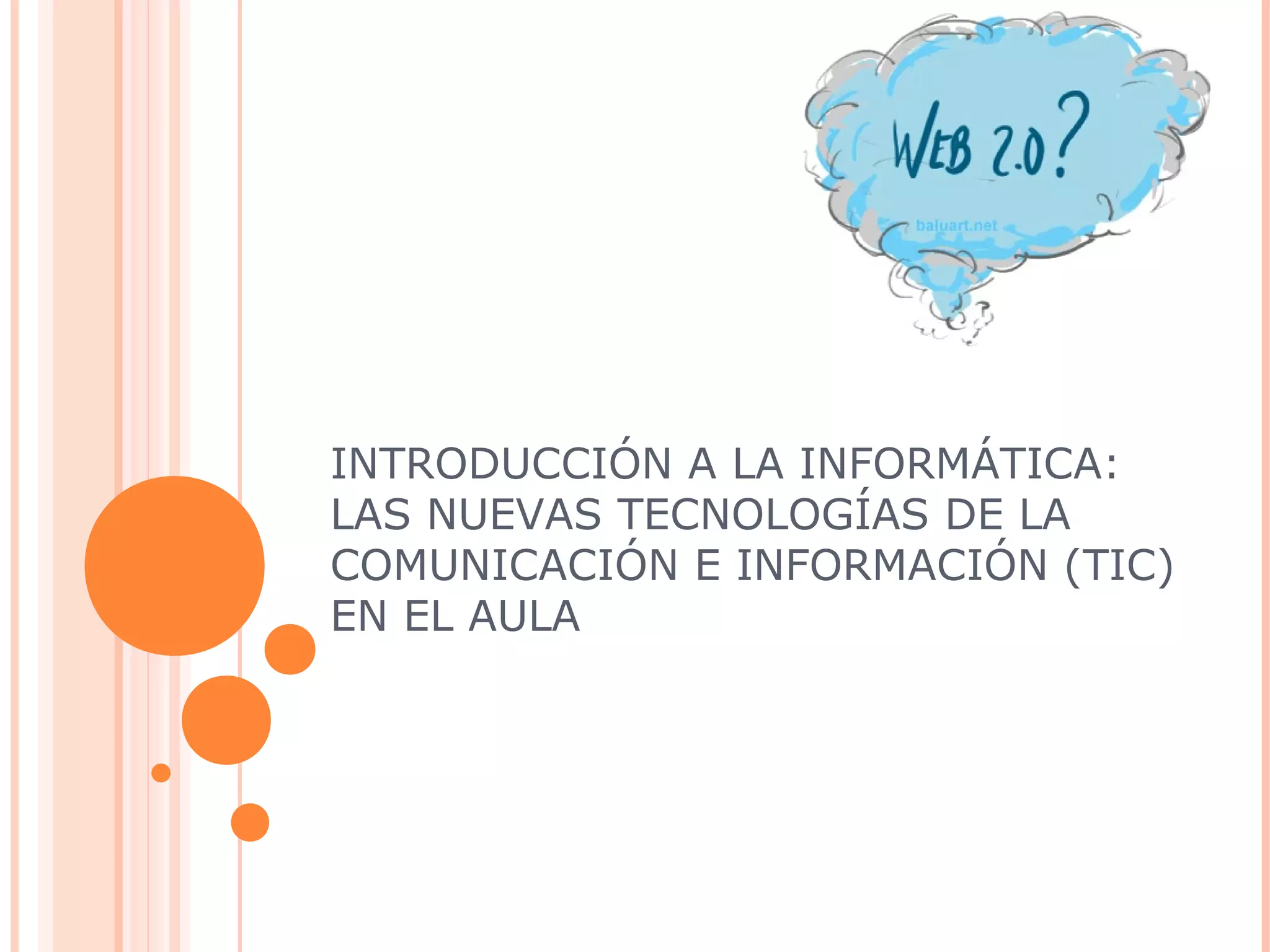 Este documento presenta una introducción al uso de las tecnologías de la información y la comunicación (TIC) en el aula. Explica conceptos básicos sobre las TIC e Internet y propone su aplicación didáctica a través de herramientas como blogs, wikis y redes sociales. El objetivo es promover el conocimiento y uso educativo de estas herramientas tecnológicas para mejorar los procesos de enseñanza y aprendizaje.