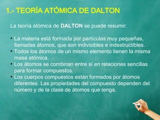 El documento describe la evolución histórica de los modelos atómicos, desde la teoría atómica de Dalton hasta el modelo de Bohr. Resume la teoría atómica de Dalton, el modelo de Thomson con el átomo como una esfera con carga positiva y electrones distribuidos en su interior, y el modelo de Rutherford con el núcleo central y los electrones en órbitas alrededor de este. También explica las contribuciones de Planck, Einstein, Thomson, Rutherford y Bohr para desarrollar la teoría cuántica a trav