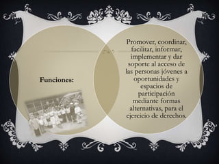 El documento identifica formas de participación ciudadana juvenil en la comunidad como la participación cultural a través de grupos de baile, música y teatro, y la participación religiosa a través de grupos juveniles en iglesias. Estas formas de participación promueven valores artísticos, tradiciones culturales y educación religiosa, y permiten a los jóvenes defender sus derechos y cumplir con sus deberes para el bienestar de la comunidad.