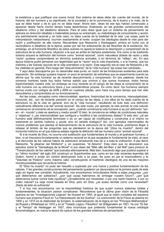 El documento discute el tema de Dios desde una perspectiva histórico-cultural. Explica que la afirmación de Nietzsche de que "Dios ha muerto" marcó un momento decisivo al señalar el desplazamiento de la creencia en Dios en Occidente. También señala que fue recientemente que se comprendió cabalmente la estructura de la vida humana, diferente a la definición previa del ser humano como un "animal racional".