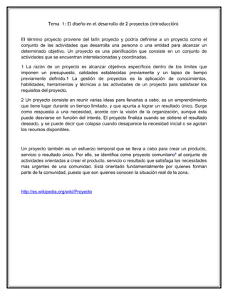 El documento presenta el temario de una práctica sobre proyectos de reproducción industrial. Incluye cinco temas: introducción a dos proyectos, procesos productivos industriales, diseño en el desarrollo de proyectos, diseño y cambio técnico, y elaboración de un proyecto de reproducción industrial. También incluye seis prácticas evaluables con fechas de entrega en abril y mayo.