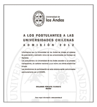 Este documento presenta la información sobre las pruebas obligatorias de la PSU 2011, incluyendo los contenidos evaluados en Lenguaje y Comunicación y Matemática, así como aspectos generales sobre el proceso de admisión. Se destaca la importancia de definir la vocación antes de enfocarse únicamente en la preparación para la prueba y se recomienda analizar criterios vocacionales como intereses y aptitudes personales.