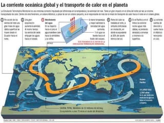 El documento describe los diferentes tipos de relieve terrestre. Explica que la superficie terrestre está compuesta principalmente por aguas marinas y tierras emergidas. Describe los continentes y tipos de aguas, incluyendo las aguas marinas, continentales y subterráneas. También explica cómo los humanos aprovechan las aguas para usos como riego, electricidad, transporte y consumo.