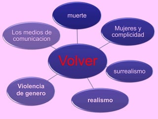 El documento trata sobre temas como la violencia de género, la muerte, el surrealismo y el realismo así como las mujeres y los medios de comunicación.