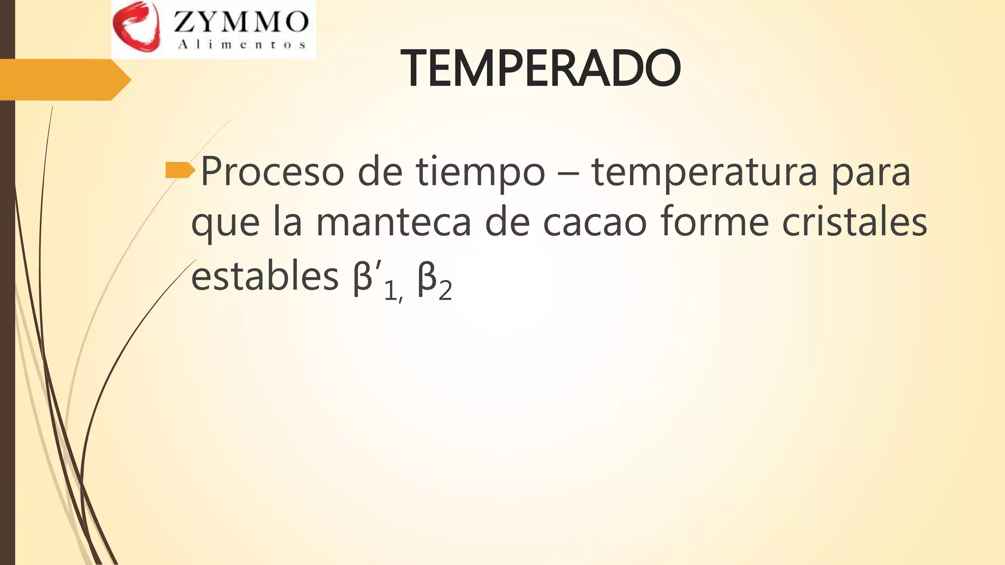 El documento describe el proceso de temperado del chocolate, el cual involucra calentar y enfriar el chocolate para que cristalice en una estructura estable. Esto mejora propiedades como el brillo, la textura y la resistencia a temperaturas. El temperado puede hacerse manualmente usando mármol o en una temperadora semiautomática, controlando cuidadosamente la temperatura para formar los cristales correctos.