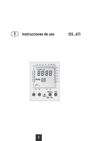 El documento proporciona instrucciones detalladas sobre la instalación y el uso de un aparato eléctrico, enfatizando que solo técnicos calificados deben realizar la instalación para evitar la invalidación de la garantía. Incluye información sobre la programación de temporizadores, la configuración de horarios y modos de operación, así como los parámetros técnicos y de seguridad del dispositivo. Se presentan las opciones para modificar y personalizar programas de encendido y apagado, junto con instrucciones para ajustar la configuración general del aparato.