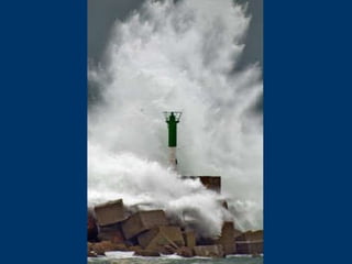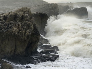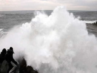 El documento menciona varios lugares del norte de España afectados por el temporal cantábrico, incluyendo localidades en Gipuzkoa, Bizkaia, Santander, Asturias y A Coruña. Se enumeran repetidamente Pasajes, Zumaia, Getxo, Bermeo, San Sebastián, Isla de Mouro, Santander, Gijón, Avilés, Luarca y A Coruña.