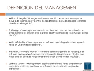 El documento presenta un análisis sobre las tendencias del management en México, destacando la evolución hacia un enfoque de liderazgo más participativo y centrado en el cliente. Se enfatiza la importancia de la innovación, la colaboración y la gestión del talento humano como claves para el éxito empresarial en el siglo XXI. Además, se abordan cambios en la estructura organizativa y la necesidad de adaptar las estrategias a un entorno comercial en constante transformación.