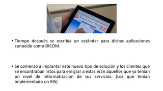 La integración entre los sistemas RIS y PACS es importante porque RIS ya no es útil sin la capacidad de ver imágenes y PACS está subutilizado sin la gestión de flujos de trabajo que proporciona RIS. Inicialmente, se usaron "brokers" que traducían entre los estándares DICOM y HL7, pero la solución ideal es un sistema integrado RIS-PACS con una base de datos única para mantener la sincronización de datos. Hoy en día, la integración RIS-PACS es esencial.