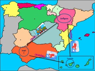 El documento describe un viaje realizado por 6 amigos de Zaragoza a Sevilla y Tenerife. Incluye la lista de equipaje, los gastos totales del viaje que fueron 2.206,9€, y las actividades realizadas en cada ciudad como visitar lugares turísticos, comer en restaurantes y alojarse en hoteles y apartamentos.