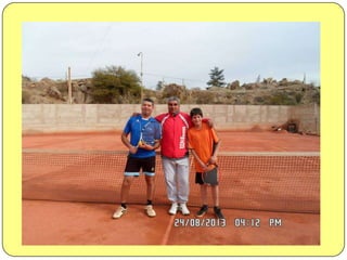 El documento es el cierre anual de 2013 de un grupo de estudiantes. Contiene la lista de nombres de los estudiantes y menciona que fueron buenos tenistas pero sobre todo buenos compañeros. Agradece al profesor Enrique por los momentos compartidos y por enseñarles, y aunque uno se ganó todos los primeros premios, en realidad todos ganaron gracias a la experiencia.