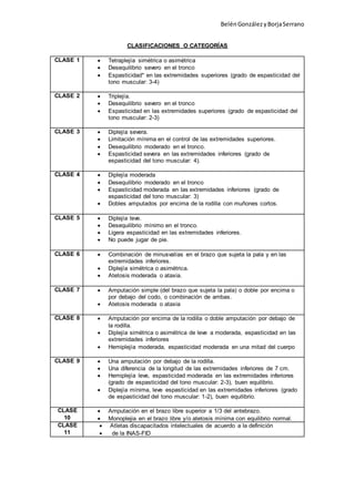 El tenis de mesa adaptado incluye las modalidades de pie y en silla de ruedas. Los partidos pueden ser individuales o de dobles y se juegan al mejor de 3 o 5 sets de 11 puntos cada uno. El área de juego debe medir al menos 8x7 metros y estar rodeada de vallas oscuras. Existen 11 clasificaciones para los deportistas en función de su discapacidad, siendo la Clase 1 la más grave ya que incluye cuadriplejía. El equipo más conocido en la Comunidad de Madrid es el Equipo Santiveri de Competic