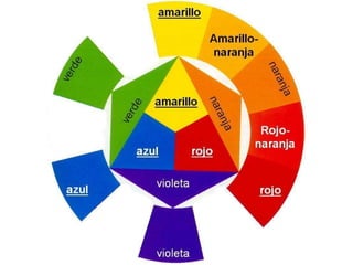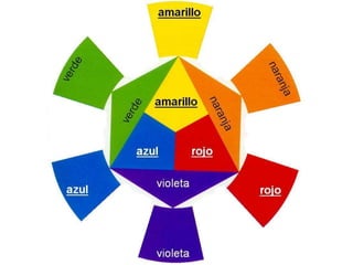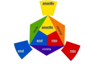 Este documento presenta varias teorías y modelos de color, incluyendo la teoría del color de Newton y Goethe, la teoría de Ostwald, y los modelos de color RGB, CMY, HSV y RYB. Explica conceptos como colores primarios, secundarios y complementarios, y describe espacios de color como RGB, CMY, HSV y cómo se generan diferentes colores a través de la mezcla aditiva y sustractiva.