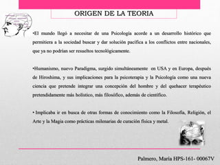 La teoría humanista surgió en la década de 1960 en respuesta a las limitaciones de los enfoques conductista y psicoanalítico. Un grupo de psicólogos progresistas, incluidos Carl Rogers, Abraham Maslow y Viktor Frankl, desarrollaron un nuevo paradigma centrado en la subjetividad humana, la libertad personal y el potencial para crecer de forma positiva. Varias de sus ideas fundamentales incluyen la importancia de la experiencia interna, el libre albedrío y la creencia en la naturaleza esencialmente buena del