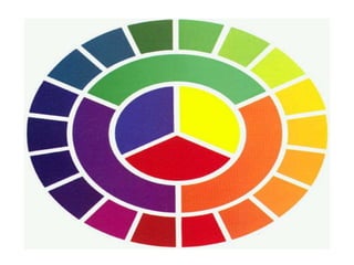 Este documento presenta una introducción a la teoría del color. Explica que el color es una percepción visual generada por el cerebro al interpretar las señales de los fotorreceptores del ojo. Describe los modelos de color RGB, RYB y CMYK, y define los colores primarios, secundarios y terciarios según cada modelo. También habla brevemente sobre los efectos psicológicos de los colores y los diferentes tipos de contraste visual.
