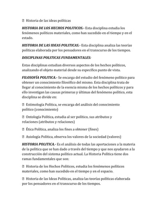Este documento resume los conceptos fundamentales de la teoría política, incluyendo la definición de teoría política, la diferencia con la teoría del estado, las disciplinas políticas fundamentales como la filosofía política y la ciencia política, y los sistemas políticos de la antigua Grecia como Esparta y Atenas.