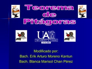 El documento explica el Teorema de Pitágoras, el cual establece que en un triángulo rectángulo, el cuadrado de la hipotenusa es igual a la suma de los cuadrados de los catetos. Se proveen ejemplos para demostrar cómo aplicar la fórmula a2 + b2 = c2 y resolver problemas geométricos. También se explican los tipos de triángulos según las medidas de los lados.