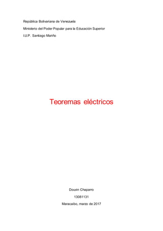 Este documento resume varios teoremas eléctricos importantes como la superposición, Thévenin y Norton. El principio de superposición establece que la corriente o tensión en un circuito es igual a la suma de las corrientes o tensiones de cada fuente individual. Los teoremas de Thévenin y Norton permiten simplificar cualquier red lineal en un circuito equivalente de una fuente de voltaje o corriente en serie/paralelo con una resistencia. El documento también cubre la máxima transferencia de potencia a una carga resistiva.