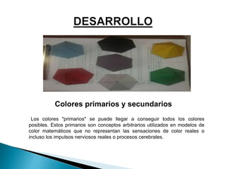 Este documento resume las sensaciones y sentimientos asociados con diferentes colores primarios y secundarios. Describe cómo el verde se asocia con la naturaleza y la tranquilidad, el rojo con la pasión y la adrenalina, el blanco con la paz y la humildad, el amarillo con el calor y la alegría, el púrpura con el misterio y la melancolía, el azul claro con la tranquilidad y la paciencia, y el negro con la oscuridad, la soledad y la tristeza. El estudiante explica sus