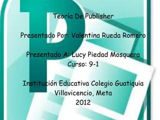 Este documento proporciona una introducción a Microsoft Publisher, incluyendo una breve historia de las versiones del software, sus características principales como la creación de boletines, folletos y páginas web, y los tipos de documentos que puede crear como boletines, tarjetas y folletos.