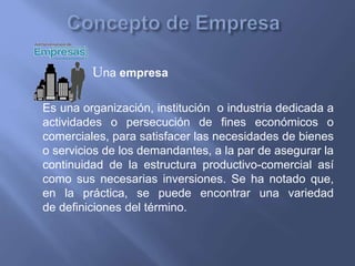 La administración proporciona normas y procesos para el buen funcionamiento de una empresa. Sin administración, una empresa no puede controlar inventarios, obtener objetivos o ganancias. La calidad total es una filosofía de mejora continua en todas las áreas de una organización para lograr calidad óptima, según la definición del profesor Ishikawa. Para ser competitiva a largo plazo, una empresa debe adoptar una estrategia de calidad total que garantice la satisfacción de clientes y elimine desperdicios mediante la participación de todo el personal.