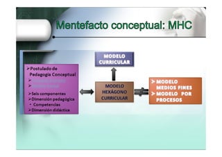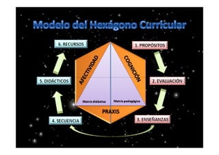 El documento presenta la teoría del hexágono curricular por competencias (MHCC) y su aplicación en el diseño de cursos y cátedras en el IAEN. Se enfatiza la importancia de los resultados de aprendizaje, la pertinencia de las competencias y el uso de una matriz didáctica para evaluar el rendimiento académico de los estudiantes. El MHCC busca integrar dimensiones cognitivas y afectivas en el proceso educativo, asegurando un enfoque integral en la enseñanza.