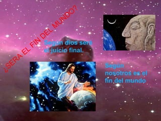El documento resume varias teorías antiguas sobre el fin del mundo según distintas civilizaciones como los aztecas, egipcios, mayas, incas y civilizaciones asiáticas. Muchas de estas culturas predijeron catástrofes naturales o eventos astronómicos como la causa del fin, y fechas como el 21 de diciembre de 2012. El documento también discute las profecías bíblicas del Apocalipsis y compara las creencias de diferentes épocas sobre cómo ocurrirá el fin.
