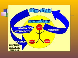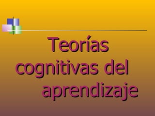 Este documento resume las teorías del aprendizaje cognitivo de Jerome Bruner. Bruner propuso que el aprendizaje ocurre a través del descubrimiento guiado, donde los estudiantes construyen activamente su conocimiento. Bruner también describió tres sistemas de procesamiento de información: la acción, las imágenes mentales y el lenguaje. El documento concluye destacando las contribuciones de la teoría cognitiva a la educación.