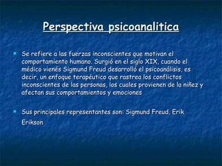 El documento presenta un resumen de las principales teorías del desarrollo humano desde diferentes perspectivas: psicoanalítica (Freud, Erikson), conductista (Pavlov, Watson, Skinner), cognitiva (Piaget) y sociocultural (Vygotsky). Cada teoría propone etapas y conceptos clave sobre cómo se desarrolla la personalidad y el aprendizaje a lo largo de la vida.