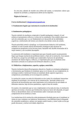 El documento presenta la información sobre el Colegio Juan Manuel Santos, incluyendo su rector Juan Manuel Babativa Cubillos, los 5 departamentos académicos y sus funciones, los proyectos pedagógicos transversales de acuerdo a la ley, y los fundamentos y objetivos del enfoque curricular de la institución.