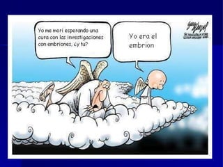 Este documento describe las células madre, incluyendo sus tipos, características y aplicaciones potenciales. Explica que las células madre pueden dividirse indefinidamente y diferenciarse en células especializadas. También discute los mitos y realidades sobre terapias con células madre adultas. La conclusión enfatiza la necesidad de ser cautelosamente optimistas pero realistas sobre el uso clínico de células madre, poniendo la seguridad del paciente como principal preocupación.