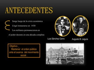 Este periodo de la historia del Perú corresponde a los años 1940 de reapertura democrática, denominada la "Primavera Democrática". Los gobiernos de Manuel Prado Ugarteche y José Luis Bustamante y Rivero permitieron ciertas libertades democráticas bajo el control de la burguesía industrial. Se caracterizó por el avance de los movimientos sociales y el fin de la primera etapa del tercer militarismo en el país.