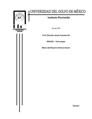El documento contiene notas de un profesor sobre la presentación de un trabajo escrito en inglés. El profesor indica que la hoja de presentación debe dividirse a la mitad con los datos del estudiante y la escuela en la parte superior e instrucciones para el profesor en la parte inferior. También se especifican los requisitos para la hoja de contenido, las hojas de tema individual y se advierte sobre penalizaciones por desfases de temas o plagio.