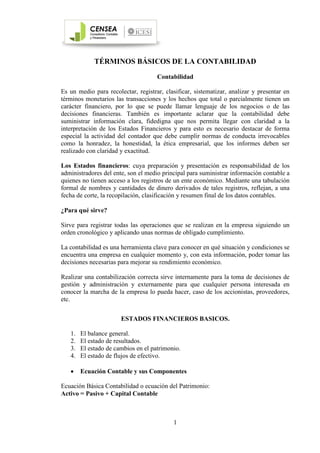 La contabilidad es un sistema que registra y presenta información financiera, haciendo énfasis en la importancia de la transparencia y la ética del contador. Los estados financieros, como el balance general y el estado de resultados, son herramientas clave para entender la situación económica de una empresa y facilitar la toma de decisiones. Además, se detallan los componentes de la contabilidad, como activos, pasivos y patrimonio, y cómo se registran las transacciones financieras.