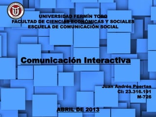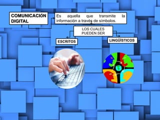 El documento resume conceptos clave de la comunicación digital y la web. Describe la evolución de la web 1.0 a la web 2.0 y 3.0, las características del internet como el hipertexto e interactividad multimedia, cómo funcionan los buscadores, tips para usarlos, y define términos como hipervínculo, página y sitio web, URL, HTML, medios digitales, periodismo digital, blog, y diferencias entre bloguero y periodista digital. También explica formatos de imágenes digitales, podcasts, chats y wikis.