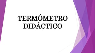 El documento describe el funcionamiento y la construcción de un termómetro didáctico, que mide la temperatura mediante la expansión y contracción de un líquido. Se explican las leyes de la termodinámica que fundamentan su operación y se proporciona un procedimiento detallado para elaborar este dispositivo utilizando materiales simples. A través de este proyecto, se busca facilitar la comprensión del concepto de temperatura y explorar la historia del termómetro.