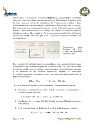 Este documento introduce los conceptos fundamentales de la termoquímica, incluyendo las reacciones exotérmicas y endotérmicas, ecuaciones termoquímicas, calor de reacción, calor de formación, y la ley de Hess. Explica cómo medir y calcular los cambios de energía asociados con reacciones químicas en términos de calor.