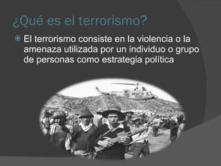 El terrorismo en Perú comenzó en 1980 con el surgimiento de Sendero Luminoso y el MRTA, motivados por la desigualdad socioeconómica y la falta de educación. Ambos grupos perpetraron ataques significativos, incluida la toma de la embajada japonesa en 1996, resultando en miles de muertes y pérdidas financieras sustanciales. La Comisión de la Verdad en Perú concluyó que el abandono estatal y la falta de comunicación facilitó la expansión del terrorismo.