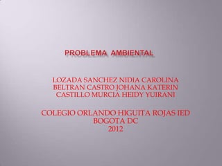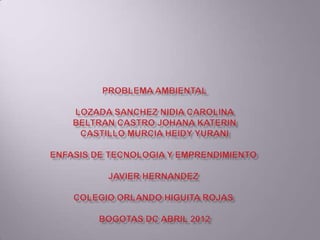 El documento habla sobre los problemas ambientales causados por la gran cantidad de basura que generan las personas. Propone clasificar los residuos, hacer campañas de concientización sobre el cuidado del medio ambiente, e incentivar la participación comunitaria en la recolección de basuras para promover un ambiente más sano.