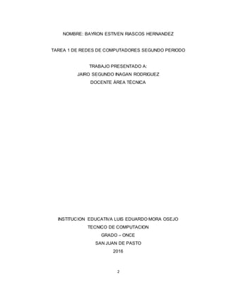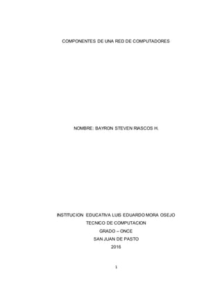Este documento describe los componentes necesarios para conectar dos computadoras y tres computadoras en una red. Para una red de dos computadoras se necesitan dos computadoras, tarjetas de red, cables UTP, conectores RJ45, una pinza ponchadora, un probador de red y capuchones para los cables. Para una red de tres computadoras se requieren tres computadoras, tarjetas de red, cables UTP, seis conectores RJ45, una pinza ponchadora, un probador de red y capuchones para los cables.