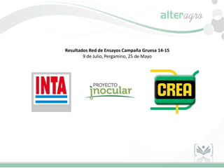 El documento presenta los resultados de un ensayo de tratamiento de semillas de soja en tres localidades de la provincia de Buenos Aires. Los rendimientos promedio por hectárea fueron mayores para la soja tratada con Bradyrhizobium japonicum e inoculante azospirillum que para la testigo en las tres localidades.