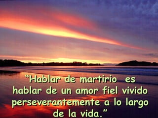 El documento habla sobre siete hermanas dominicas que fueron martirizadas en 1936 durante la persecución religiosa en España. Vivieron sus votos religiosos con entusiasmo y entrega a los demás. A pesar de momentos de miedo, mantuvieron su fe y amor a Jesucristo hasta el final, dando su vida por la defensa de su fe católica.