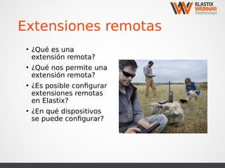 Este documento describe cómo configurar extensiones remotas seguras en Elastix a través de una red privada virtual (VPN) implementando el servicio OpenVPN. Explica los escenarios de Elastix detrás de un firewall y conectada a Internet, y los pasos para instalar paquetes VPN, generar certificados, configurar archivos de cliente y servidor, e implementar clientes VPN en dispositivos Android, iOS y Windows.