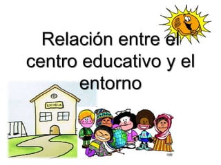 El documento describe la relación entre los centros educativos y su entorno. Explica que el entorno influye en el centro educativo y produce cambios como la extensión del rol del centro a otras dimensiones como la familiar y laboral. También fomenta una mayor participación externa en la toma de decisiones del centro y un énfasis en analizar el entorno próximo. Luego, presenta fórmulas organizativas para una mayor apertura al entorno como el uso compartido de instalaciones y contextualizar las actividades escolares. Finalmente, señala que la autonom