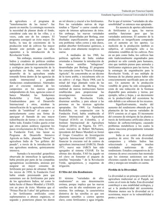La revolución verde en el Punjab, impulsada por el desarrollo de variedades de trigo de alto rendimiento, ha sido un fracaso que ha exacerbado las desigualdades y la violencia sin lograr la prosperidad esperada. A pesar de aumentar la producción de ciertos cultivos, ha llevado a la erosión de suelos, pérdida de diversidad genética, y dependencia de agroquímicos, afectando la sostenibilidad agrícola. En lugar de abundancia, se ha generado una crisis que ha desplazado a pequeños agricultores y ha incrementado las tensiones sociales.