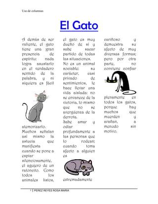 El gato es un animal valiente y dueño de sí mismo que demuestra su afecto de diversas formas, aunque prefiere vivir de manera independiente. Aunque no es un animal sociable, sabe amar u odiar profundamente a quienes lo rodean. Algunos gatos muerden o arañan sin motivo, por lo que no se debe confiar plenamente en todos ellos.